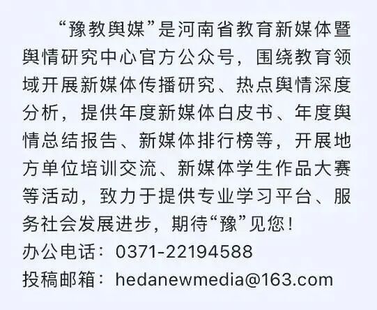 河南省教育新媒体暨舆情研究中心依托河南大学新闻与传播学院开展工作,重点开展教育领域新媒体发展于舆情管理相关研究,旨在为全省教育新媒体发展和舆情引导提供智力支持。