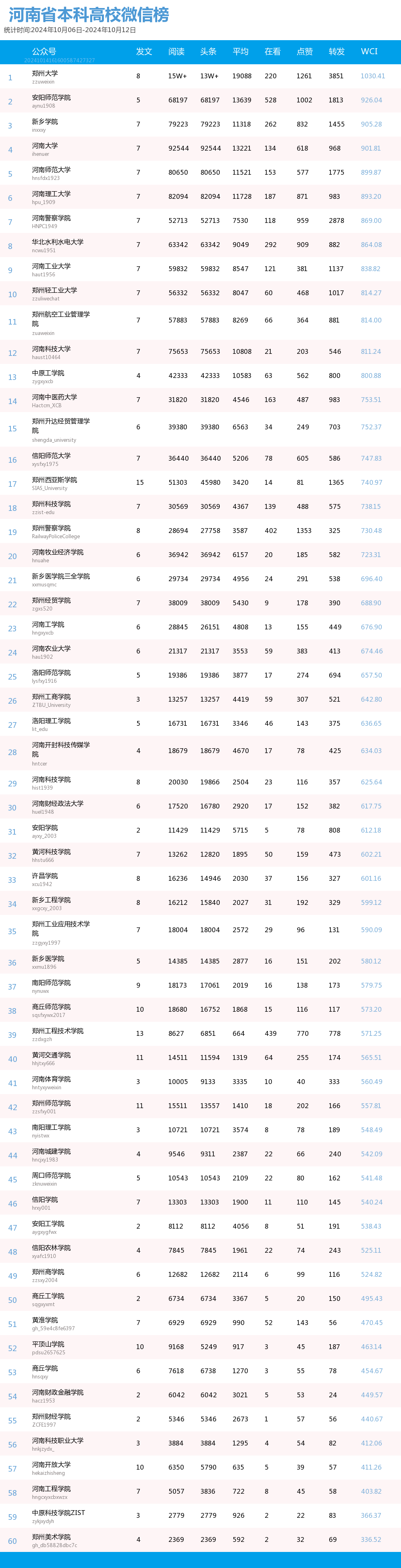 河南省本科院校官方微信WCI 总榜